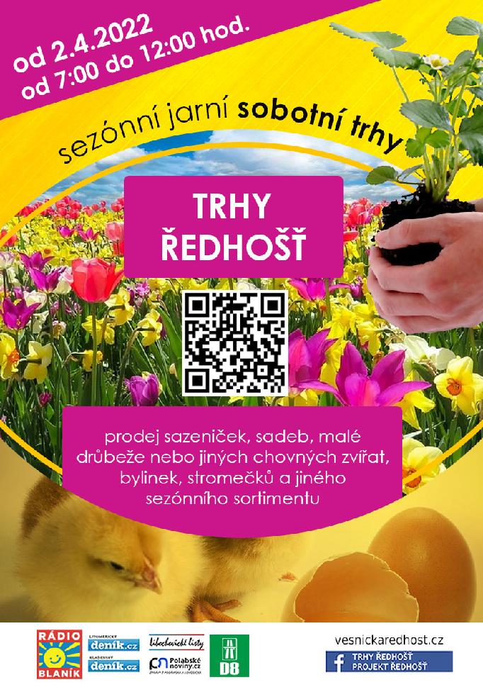 Začínají sobotní sezónní jarní trhy v Ředhošti. Je zde prodej sazeniček, sadeb, malé drůbeže a dalších chovných zvířat. Najdete zde bylinky, stromečky a další sezónní sortiment.